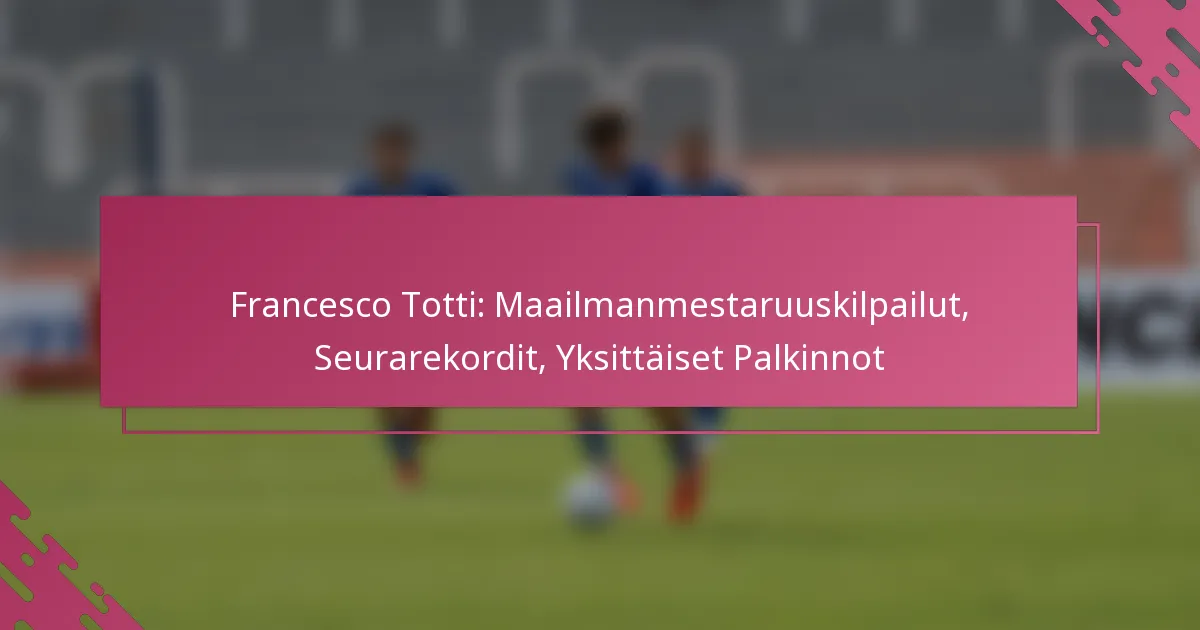 Francesco Totti, ikoninen hahmo jalkapallossa, vaikutti pysyvästi sekä kansainvälisellä kentällä että AS Romassa. Hänen panoksensa Italian maajoukkueelle oli ratkaiseva vuoden 2006 MM-kisojen voitossa, kun taas hänen seurarekordinsa, mukaan lukien eniten maaleja ja otteluita, korostavat hänen poikkeuksellista lahjakkuuttaan ja omistautumistaan. Koko uransa ajan Totti sai lukuisia yksittäisiä palkintoja, mikä vahvisti hänen perintöään jalkapallon maailmassa. Mitkä olivat Francesco Tottin panokset MM-kisoissa? Francesco Totti teki merkittäviä panoksia MM-kisoissa uransa aikana, esitellen poikkeuksellisia taitojaan ja johtajuuttaan kansainvälisellä kentällä. Hänen esityksensä auttoivat nostamaan Italian maajoukkueen…