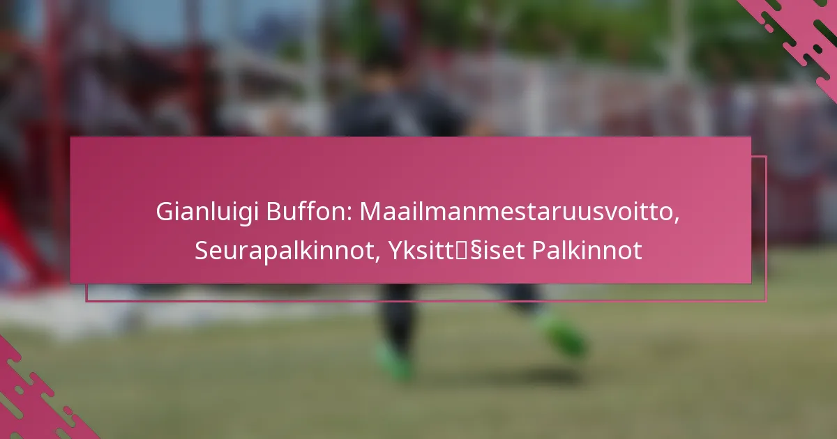 Gianluigi Buffonia juhlitaan hänen keskeisestä roolistaan Italian voitossa vuoden 2006 FIFA-maailmancupissa, jossa hänen erinomaiset torjuntataidot ja johtajuus olivat ratkaisevia. Koko hänen loistavan uransa ajan, erityisesti Juventuksessa, hän on kerännyt lukuisia seurapalkintoja ja yksittäisiä palkintoja, vahvistaen perintöään yhtenä jalkapallon historian suurimmista maalivahdeista. Key sections in the article: Toggle Mitkä ovat Gianluigi Buffonin keskeiset saavutukset FIFA-maailmancupissa? Yhteenveto Buffonin roolista vuoden 2006 FIFA-maailmancupissa Merkittävät suoritukset ja tilastot turnauksen aikana Buffonin johtajuuden vaikutus Italian voittoon Buffonin asettamat ennätykset maailmancupin historiassa Unohtumattomat hetket ja kohokohdat…